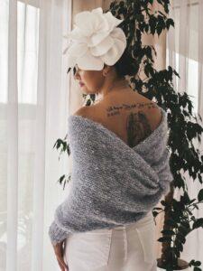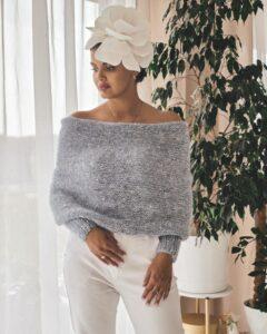 Autorski wzór na elegancką, lekką etolę wykonaną na drutach z połączenia dwóch luksusowych włókien: 100% wełny merino oraz kid mohair z jedwabiem (70% / 30%). Takie zestawienie zapewnia wyjątkową miękkość, subtelną puszystość oraz delikatny połysk, nadając gotowemu projektowi ponadczasowy, szlachetny charakter.